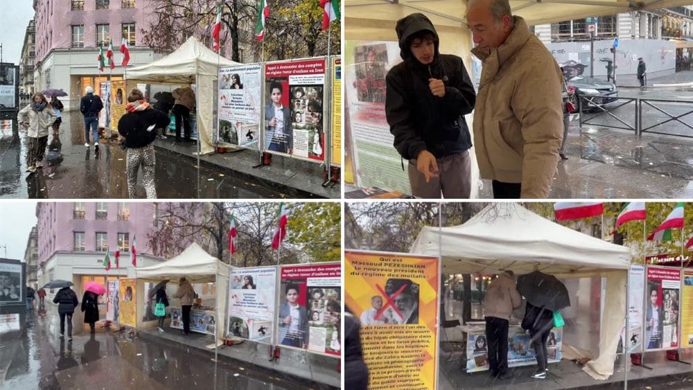 Paris, France – November 21, 2024: The Iranian community in Paris held a powerful exhibition featuring photographs and books to show solidarity with the Iranian Revolution and denounce the regime’s increasing use of executions.