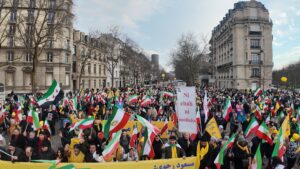 Thousands of Iranians and political and social figures gathered in Paris on February 8 to mark the anniversary of the February 1979 revolution that overthrew the Shah of Iran.